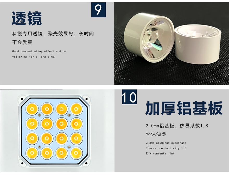★可選用不同角度(10?、25?、40?、60?、90?)的聚光透鏡集中有效光源,減少發散光損失,有效減少光污染;